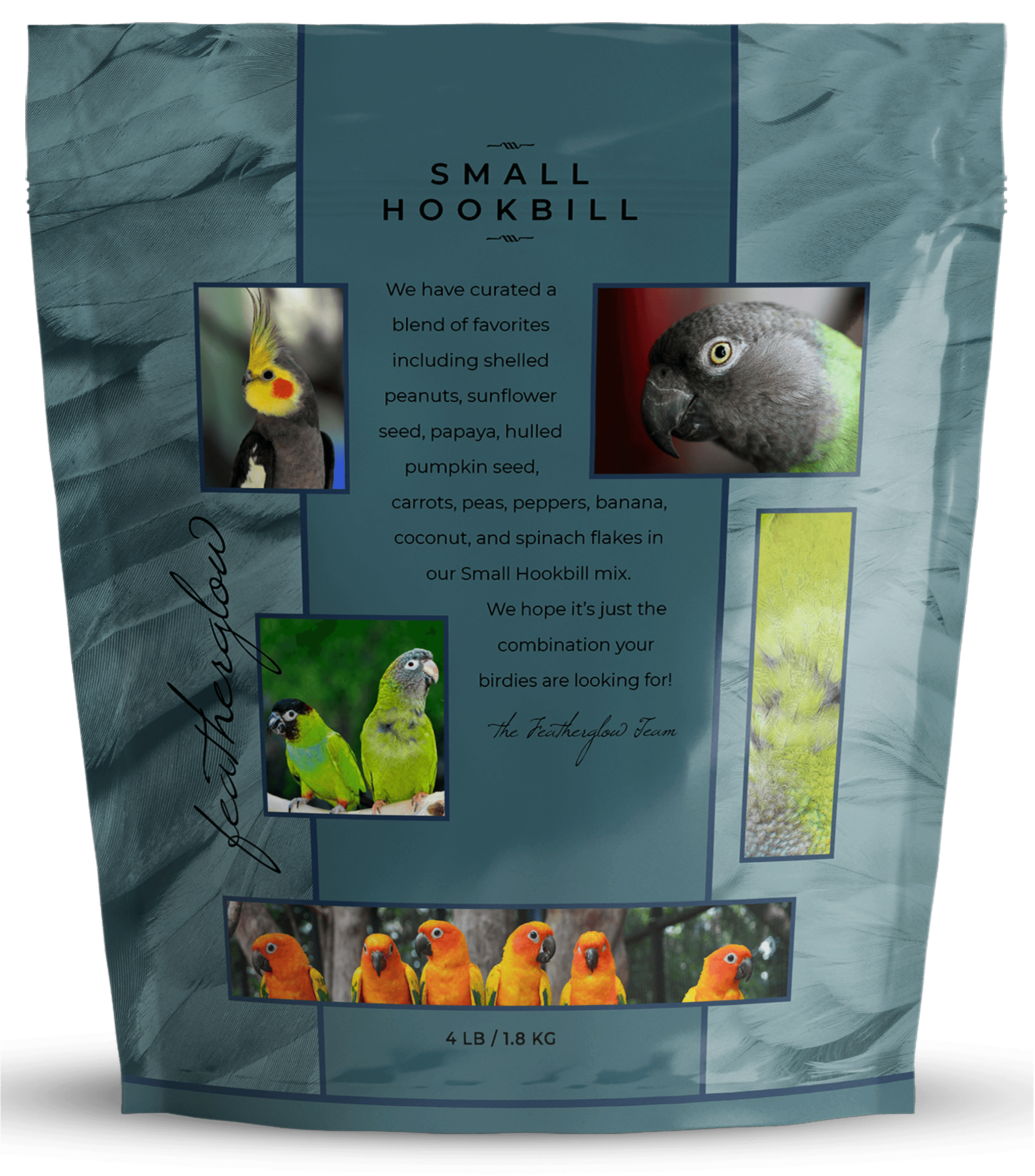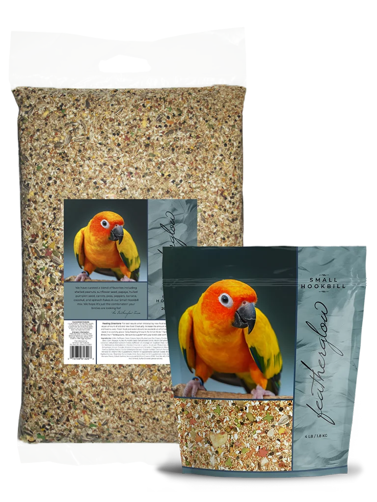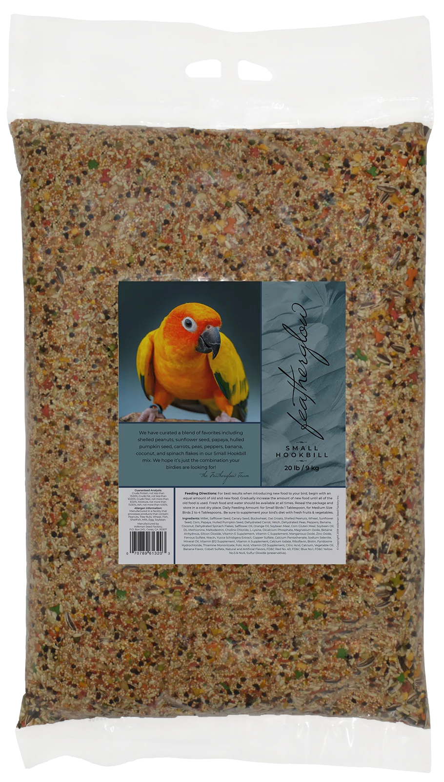 Millet, safflower seed, canary seed, buckwheat, oat groats, shelled peanuts, wheat, sunflower seed, corn, papaya, hulled pumpkin seed, dehydrated carrot, vetch, dehydrated peas, peppers, banana, coconut, dehydrated spinach flakes, safflower oil, orange oil, soybean meal, corn gluten meal, soybean oil, DL-methionine, maltodextrin, choline chloride, L-Lysine, dicalcium phosphate, magnesium oxide, betaine anhydrous, silicon dioxide, vitamin E supplement, vitamin C supplement, manganous oxide, zinc oxide, ferrous sulfate, niacin, yucca schidigera extract, copper sulfate, calcium pantothenate, sodium selenite, mineral oil, vitamin B12 supplement, vitamin A supplement, calcium iodate, riboflavin, biotin, pyridoxine hydrochloride, thiamine mononitrate, folic acid, vitamin D3 supplement, citric acid, calcium, vegetable oil, banana flavor, cobalt sulfate, natural & artificial flavors, Vegetable/ Fruit Juice for color, sulfur dioxide (preservative)