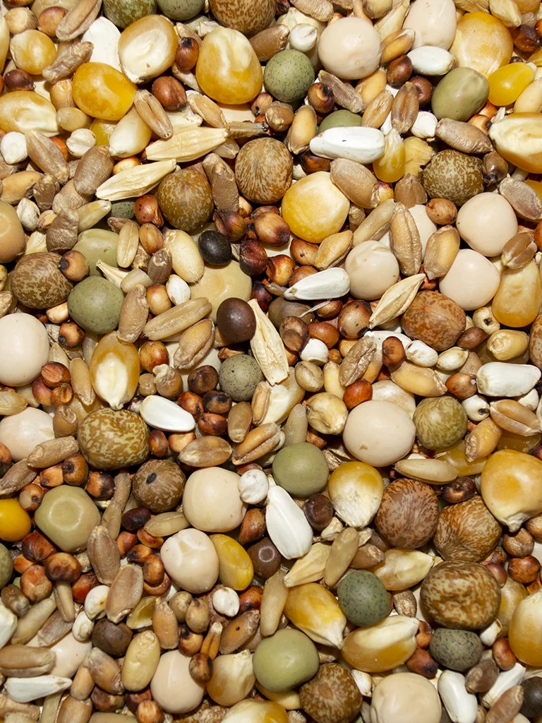 Yellow Peas, Maple Peas, Austrian Peas, Dunn Peas, Corn, Wheat, Milo, Safflower Seed, Oat Groats, Barley, Vetch and Safflower Oil.