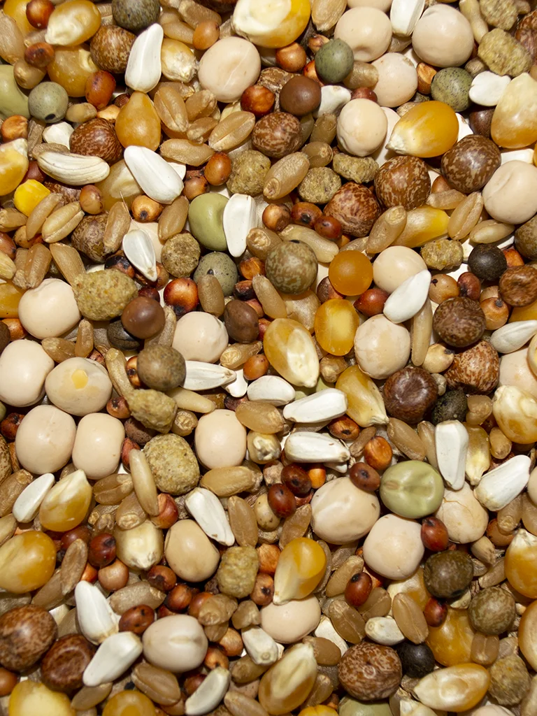 Yellow Peas, Maple Peas, Dunn Peas, Wheat, Corn, Milo, Safflower Seed, Austrian Peas, Oat Groats, Safflower Oil, Soybean Meal, Oats, Sun-Cured Alfalfa, Calcium Carbonate, Corn Gluten Meal, Mono-Dicalcium Phosphate, Canola Oil, Dried Saccharomyces cerevisiae, Beet Pulp, Salt, DL-Methionine, Mannan Oligosaccharides, L-Lysine, Propionic Acid (preservative), Choline Chloride, Anise Oil, Manganese Proteinate, Copper Proteinate, Cobalt Proteinate, Dried Lactobacillus Acidophilus Casei, Bifido Bacterium Thermophilum, Enterococcus Faecium, Zinc Oxide, Manganous Oxide, Ferrous Sulfate, Vitamin E Supplement, Vitamin A Supplement, Vitamin D Supplement, DL-Calcium Pantothenic Acid, Niacin Supplement, Riboflavin Supplement, Vitamin K (Menadione Sodium Bisulfite Complex) (source of Vitamin K activity), Thiamine Mononitrate, Pyridoxine Hydrochloride, Copper Sulfate, Ehtylenediamine Dihydriodide, Folic Acid, Vitamin B12 Supplement, Biotin Supplement, Sodium Selenite.